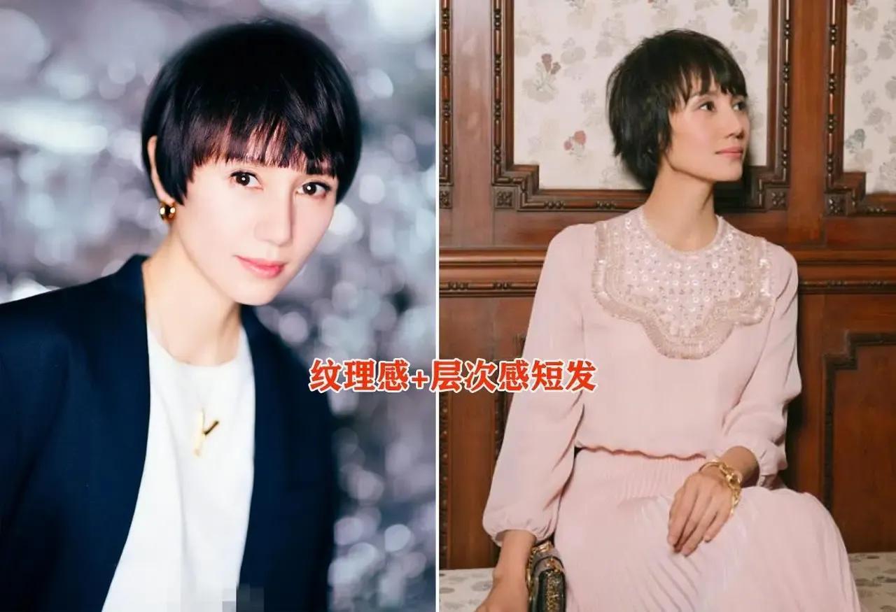 就算是女明星袁泉,她剪了短发造型,也是需要把头发做一个纹理感的烫发处理,或者是说你善于做造型的情况下,你还可以用一些玉米夹小夹板把它夹出一个小纹理,那么就能达到像袁泉这位女明星那样很有层次感的发型。